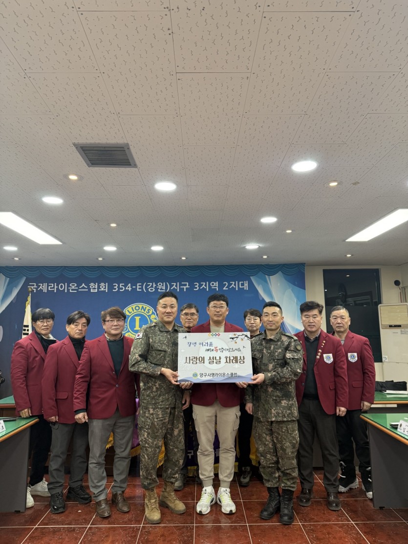 양구사명라이온스큽럽 군부대 설차례상 차려주기 봉사 페이지 정보 작성자 양구사명 댓글 0건 조회 10회 작성일 26-02-18 18:20 본문 양구사명라이온스큽럽 군부대 사랑의 설날 차례상 차려주기 목록 이전글제4지역 부총재 곽매홍L 봉사사업 26.02.13 다음글원주제일클럽 스크린파크골프대회 26.02.13