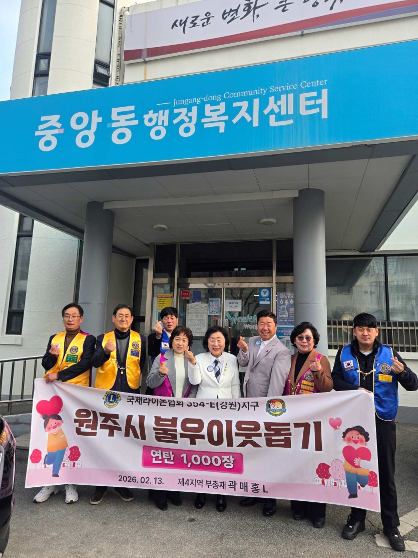 2026년 2월 13일 제4지역부총재 곽매홍L 봉사사업으로 설 명절을 맞이하여 '원주시 불우이웃돕기' 제목으로