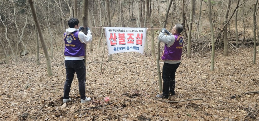 춘천라이온스클럽 등산로 산불조심 캠페인 현수막 설치 활동