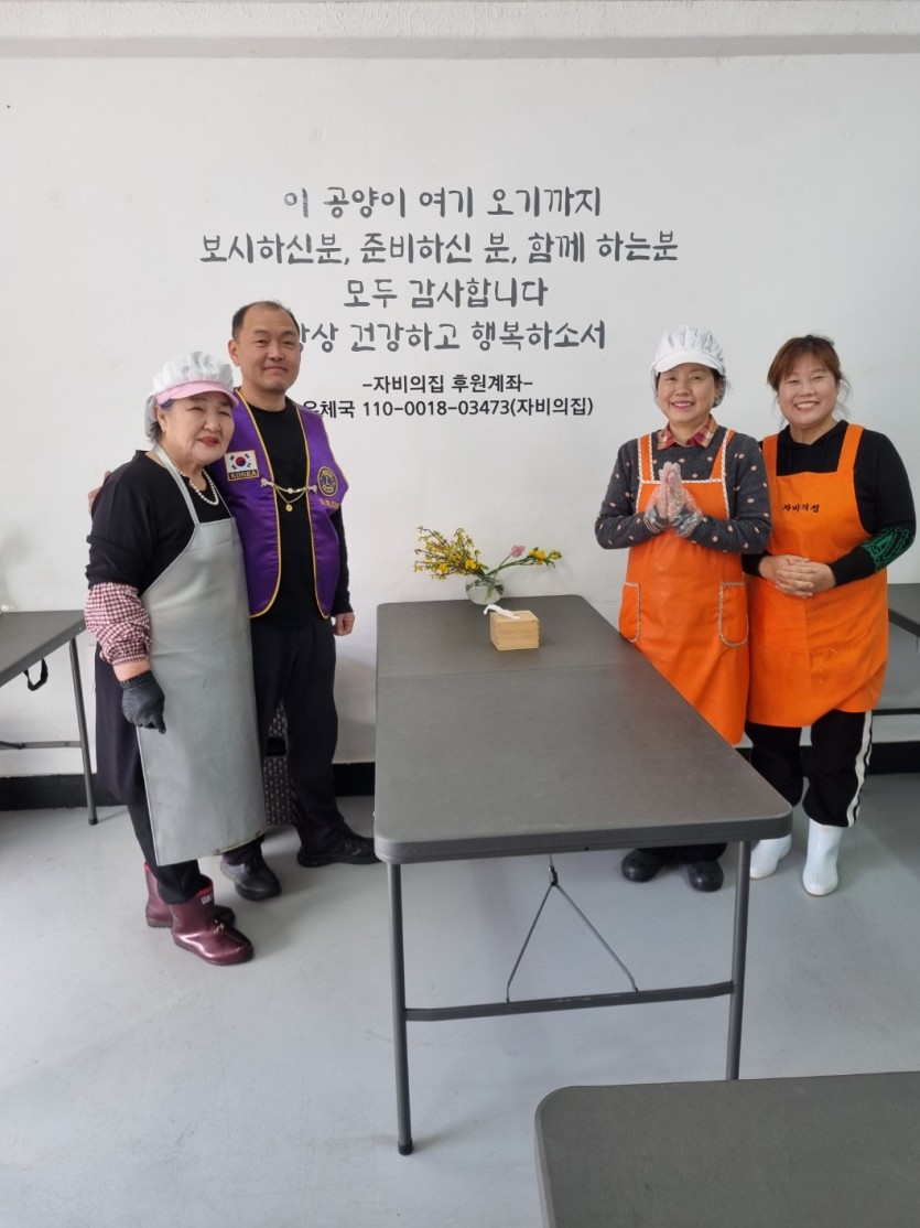 춘천라이온스클럽 자비의 집 봉사활동 페이지 정보 작성자 춘천 댓글 0건 조회 7회 작성일 26-02-21 13:42 본문 2026년 2월 20일 춘천라이온스클럽에서는 매월 세째주 금요일 마다 춘천소재 자비의집 (사랑의 급식소)에서 설거지 및 급식봉사를 하고 있습니다. 목록 이전글춘천라이온스클럽 농촌 일손돕기 봉사 26.02.21 다음글경포클럽 임팩트교부금 새해 떡국떡 봉사 26.02.20
