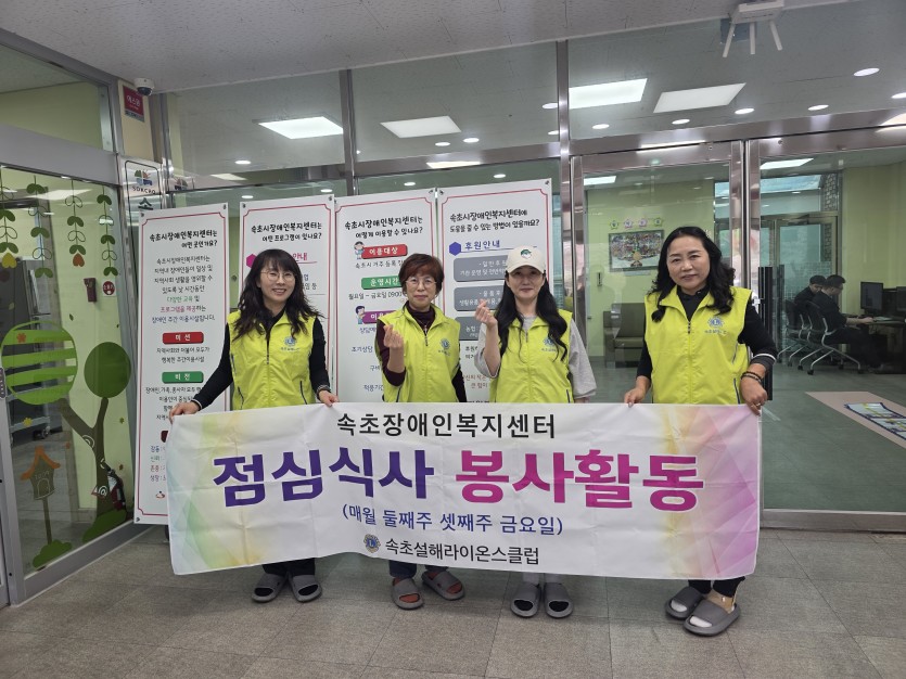 속초설해라이온스클럽 페이지 정보 작성자 속초설해 댓글 0건 조회 33회 작성일 26-04-29 18:25 본문 매월 둘째 세째주 금요일 속초장애인복지센터 점심봉사 목록 이전글속초설해라이온스클럽 26.04.29 다음글양양해송라이온스클럽 장애인과 함께하는 체육대회 참여 봉사 26.04.26