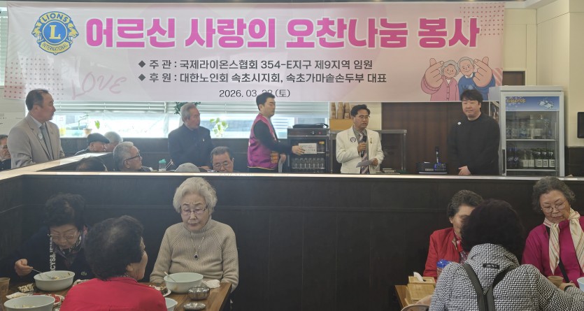 354-E(강원)지구 제9지역 "어르신 사랑의 오찬 나눔봉사"가 2026년 3월28일(토) 11:00에 지역에 거주하는 어르신들을 모시고 따뜻한 밥한끼와 함께 담소를 나누는 조촐한 나눔의 시간을 가졌습니다.