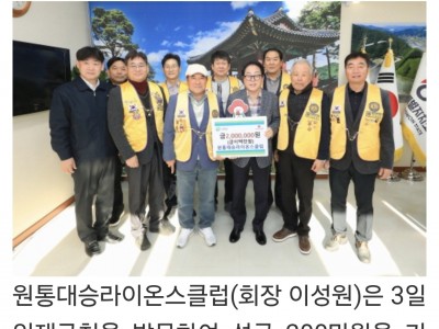 "원주라이온스클럽 저소득취약계층 후원금 전달"