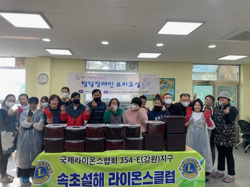 속초설해라이온스김장봉사 페이지 정보 작성자 속초설해 댓글 0건 조회 16회 작성일 25-11-24 20:21 본문 11월24일 속초장애인복지센터에서 "발달장애인요리교실" 프로그램으로 진행한 김장하기에 회원들이 동참해서 센터김장을 함께했습니다 목록 다음글내성라이온스클럽 은총의집 나눔및후원 25.11.24