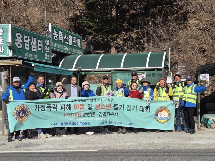 가정폭력 피해 아동 및 청소년 돕기 걷기 대회 페이지 정보 작성자 철원두루미 댓글 0건 조회 22회 작성일 25-11-22 18:29 본문 가정폭력 피해 아동 및 청소년 돕기 걷기 대회11월 18일 춘천댐 ~ 잠곡저수지 목록 이전글속초설해라이온스 난방유 지원 봉사 25.11.23 다음글불우이웃봉사금 전달 25.11.21