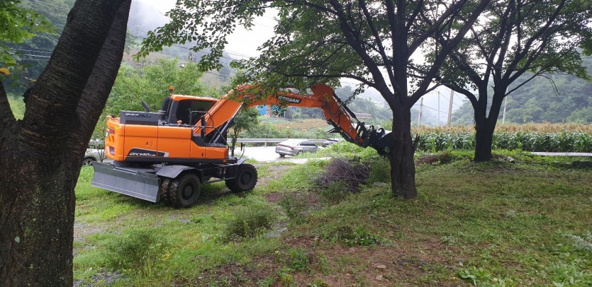 포크레인 동원하여 폐목재 및 주변정리