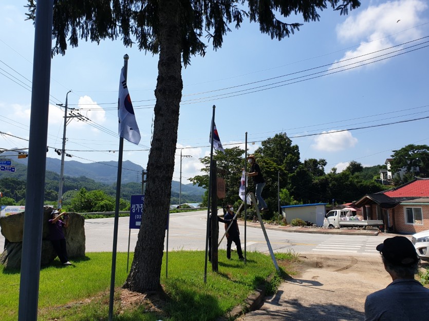 원주시 귀래면 운계1리(이장 김재식)는 제76주년 광복절을 앞둔 지난 7일 원주중앙라이온스클럽의 후원을 받아 마을 입구 도로변 및 마을회관 앞 게양대 24개소에 태극기를 게양했다.
