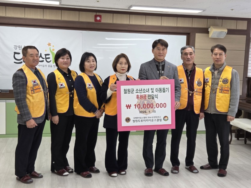 철원군 소년소녀 및 아동돕기 후원금 전달식 페이지 정보 작성자 철원두루미 댓글 0건 조회 44회 작성일 26-01-18 20:36 본문 활동날짜 : 2026.01.15활동내용 : 다같이 한마음 체육대회 선물과 차 봉사 목록 이전글두루미라이온스 월례회의 26.01.18 다음글25년 12월 12일 물품후원사진입니다 26.01.17