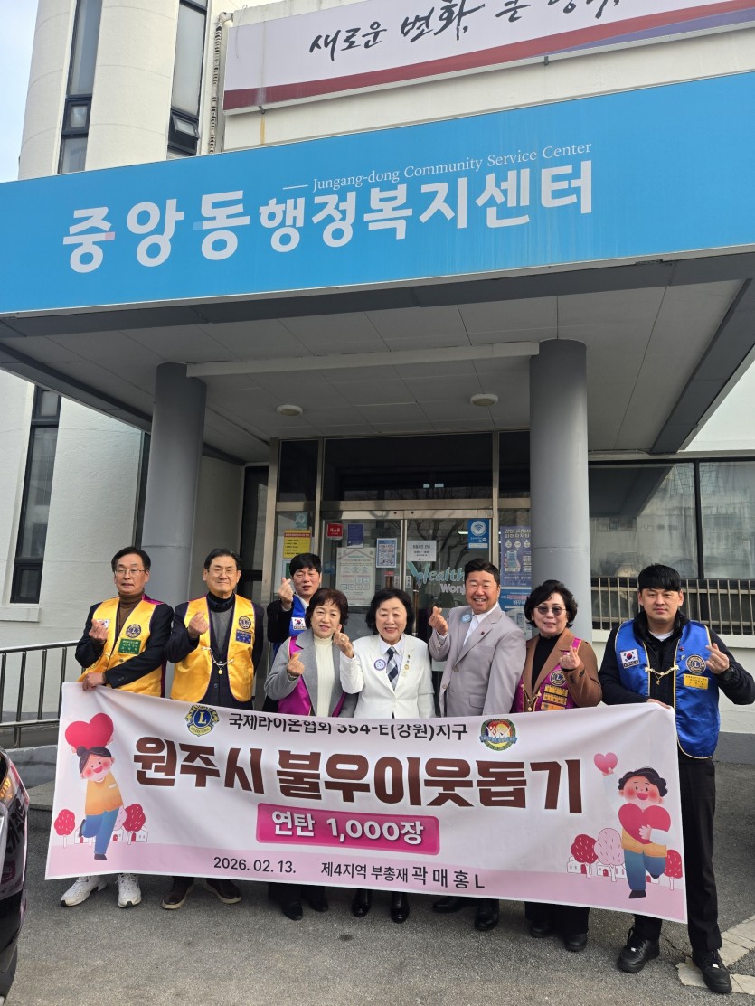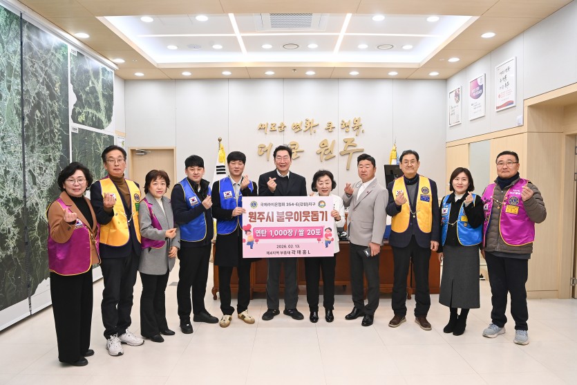 2025~2026 제4지역 곽매홍 부총재 봉사사업으로 02월 13일, 설 명절을 맞이하여 '원주시 불우이웃돕기' 제목으로 연탄 1,000장 및 쌀 20포를 원주시장실에서, 무실동행정복지센타, 중앙동행정복지센타에 저소득 취약계층 후원을 전달하였습니다.