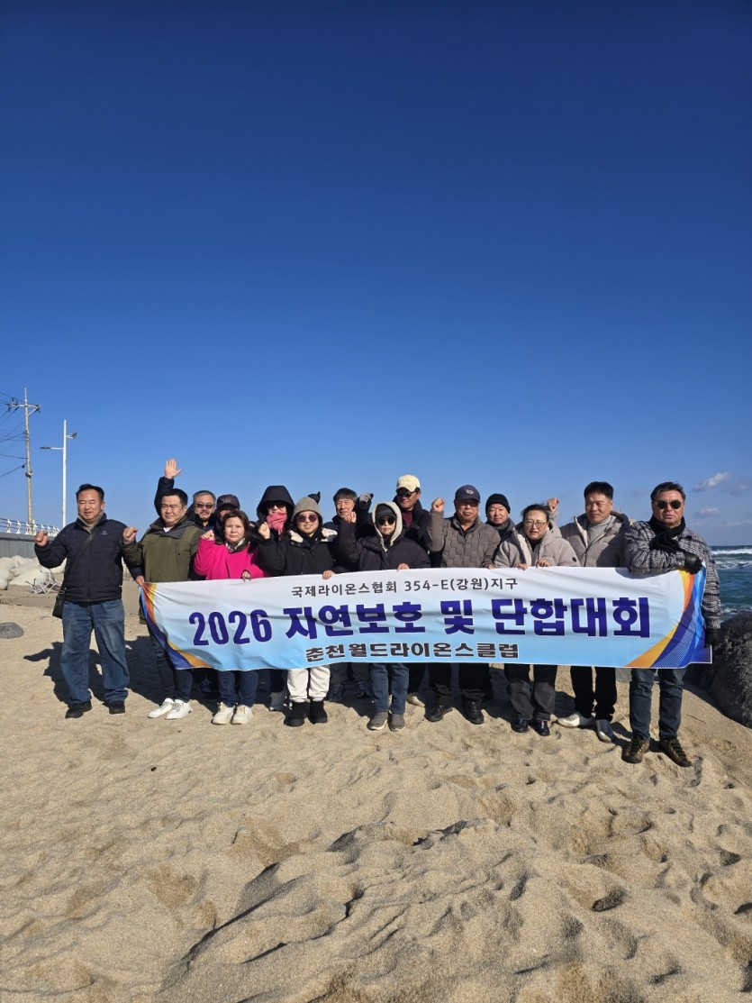 본 클럽에서는 2026년 1월 11일(일) 회원 11명 라이온가족 6명 참석하여 강릉 바닷가 주변에 있는 쓰레기 수거하는 자연보호활동을 펼쳤습니다.